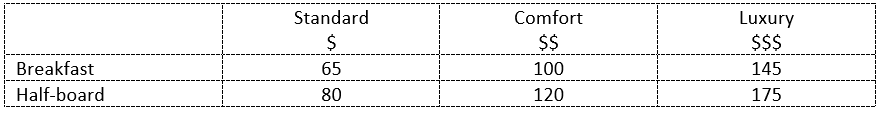 Subject to seasonal variations and selected accommodations, you can find below approximate prices of expenditures per day, calculated per person: